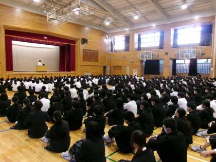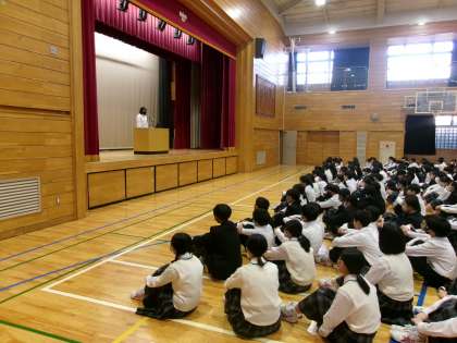 予定時刻よりも早く集合が完了したため、生徒会本部の司会で朝礼が始まりました。決められた時間で動くことよりも、自分たちの判断で行動することを優先した自立的な活動となりました。