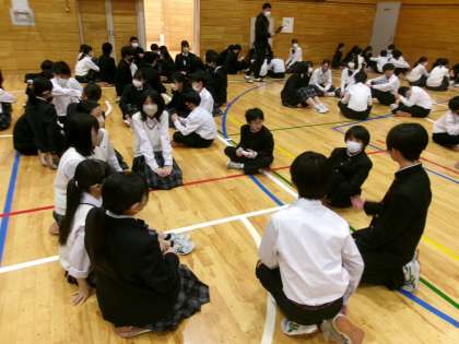 今日は、学習内容のおおまかな工程の紹介と顔合わせが行われました。7・8年生合同班になるため、最初は緊張した班会議でしたが、次第に打ち解けて、笑顔が多くなっていました。