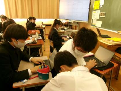 創っては消し、再考しては創る 公開日 2023/11/21 更新日 2023/11/21 できごと 8年生国語では、文章表現能力の育成が進んでいます。 この日は『思う・感じる・考えるとは』をテーマとして、どのような違いや特色があるのかなどについて、文章を構想・構成しました。1人で熟考する生徒、級友と思考を交流させる生徒など、各自が学習方法を選択して進める複線系の授業風景は、他校のモデルとなっています。