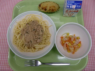LUNCH TIME通信No.116 公開日 2023/11/21 更新日 2023/11/21 LUNCH TIME 通信 【ツナときのこのおろしパスタ オニオンドレッシングサラダ スイートポテト 牛乳】 今日のスイートポテトは、さつまいもの皮をむいて蒸すところから、全て給食室で手作りしています! 明後日、11月23日は勤労感謝の日です。給食を作ってくれた人に感謝して、今日もおいしくいただきましょう! ★給食リクエスト★ <スイートポテト>7年6組