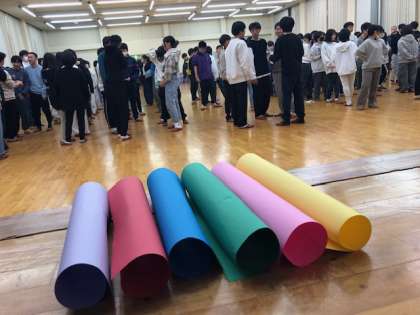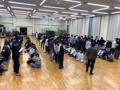男子の伝言ゲームを女子が見守りながら、応援しています!