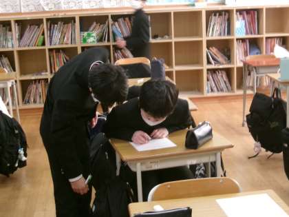 子どもの声が響く道徳 公開日 2024/02/14 更新日 2024/02/14 できごと 毎週水曜日の1時間目は、道徳を行っています。考える授業を通して、子どもたちの実社会に通用する力を身に付けています。 この日、7年生のあるクラスでは、自身の経験に基づきながら「人との関わり方」に着目した授業を行いました。自分の個性や能力を高めるためのヒントがたくさん詰まった授業でした。