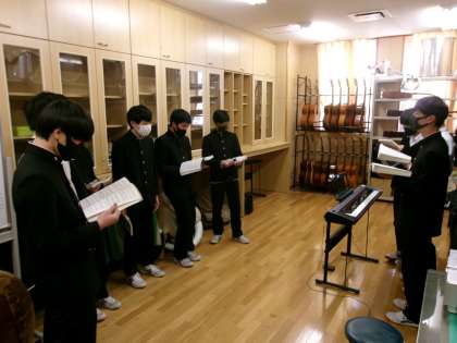 1ヶ月後には・・・ 公開日 2024/02/14 更新日 2024/02/14 できごと 受験シーズン真っ最中の9年生。1ヶ月後には、合唱コンクールが行われます。 この日はパート別にわかれて、自由曲の練習が行われていました。4部合唱のため、各パートごとの強弱が勝敗のかぎをにぎる展開になりそうでした。