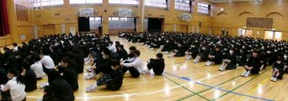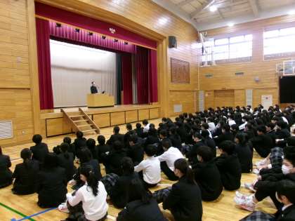 今日は小春日和のような暖かさの中、生徒朝礼を行いました。