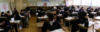 いよいよ明後日は都立入試。すでにカリキュラムを終えている5教科では、入試対策問題に挑戦しています。一方、アイデアと作業時間が必要な実技教科では、答えが多様に存在する問いに挑んでいるため、自然な対話が教室にあふれていました。