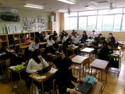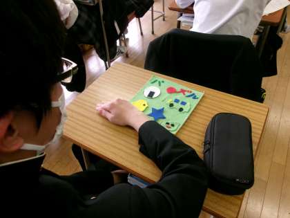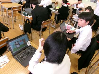 9年生家庭科では、幼児を対象とした絵本作りが終盤を迎えていました。作品の向こう側にいる子どもを想像しながら創りあげる光景は、何だか感動的でした。