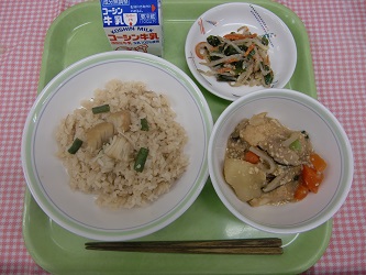 LUNCH TIME通信No.169 公開日 2024/02/22 更新日 2024/02/22 LUNCH TIME 通信 【ホタテご飯 じゃがいもと生揚げのそぼろ煮 甘辛味噌和え 牛乳】 国際政治情勢の変化に伴い、輸出用ホタテ貝が日本に余っている現状があります。今日は、北海道産のホタテを無償で提供していただきました。ホタテをおいしく食べて、北海道の水産加工業者さんを応援しましょう。 また、今日は鉄分豊富食材である大豆や生揚げ、小松菜を使用した鉄分強化献立です。