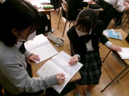 テスト前! 公開日 2024/02/22 更新日 2024/02/22 できごと 8年生数学では、来週の期末考査を前に、問題演習に取り組んでいました。 先生が出した課題ではなく、いくつかの選択肢から自らの学習状況に合わせて学習を進めていく手法が、生徒の主体性を引き出していました。