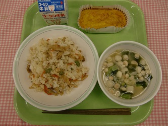 【ちらし寿司 五目卵焼き お吸い物 牛乳】