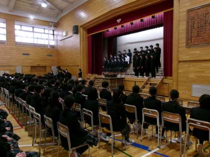 最後の練習 公開日 2024/03/08 更新日 2024/03/08 できごと 1時間目、8年生による学年練習が行われました。 どの生徒も緊張感ある雰囲気で取り組んでいて、厳かな風潮を醸し出しています。1曲に思いを込めて、明日に備えます。