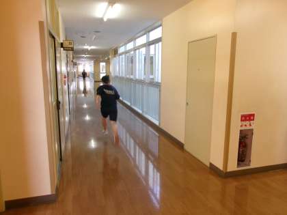 陸上部は、校庭が使えないため、校舎内で安全を確保しながら自主練習を行っていました。その近くの生徒会本部では、何やら楽しそうな企画を考えていました。また、校庭では、場所を融通しながら、テニス部が活動していました。