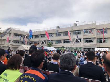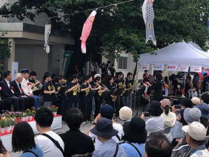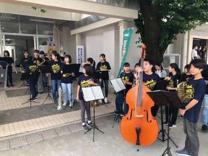 本日、地域で催事が行われています。吹奏楽部のファンファーレで開会式が始まりました!