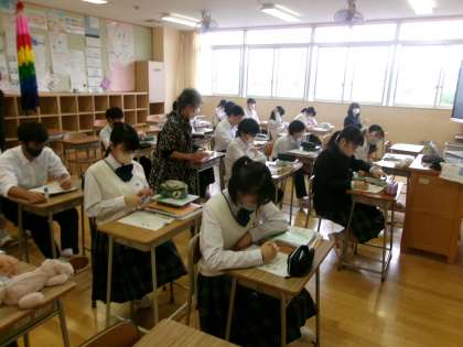 今日は、willの用法について、自分の考えに基づいて英文を作成しました。子どもたちが自分自身の言葉で語る姿に頼もしさを感じました。