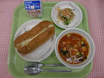 LUNCH TIME通信No.20 公開日 2024/05/13 更新日 2024/05/13 LUNCH TIME 通信 【ジャーマンポテトパン ゴマドレッシングサラダ 鶏肉のトマト煮 牛乳】 給食室では、生ものや調理済食品(完成品)を取り扱う時、使い捨て手袋をつけて厳しい衛生管理ルールのもと、調理しています。手袋をつける時と外す時は、破れなどのチェックも欠かしません。今日もみなさんのもとに、安心・安全な給食をお届けします。