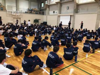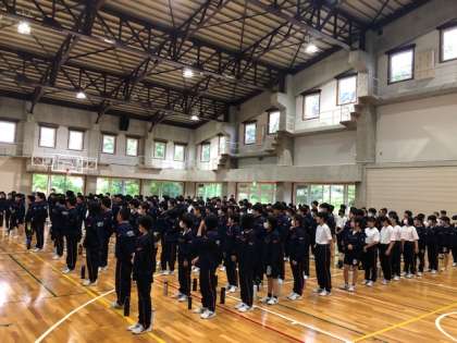 移動教室2日目2 公開日 2024/07/08 更新日 2024/07/08 できごと 時間通りにプレイングホームに集まり、実行委員会主催の朝会が始まりました。 昨日の疲れが残っている生徒もいるようですが、体育委員が模範となった体操にしっかりと取り組んでいました。