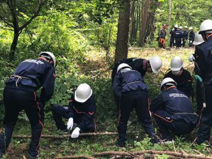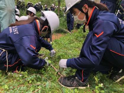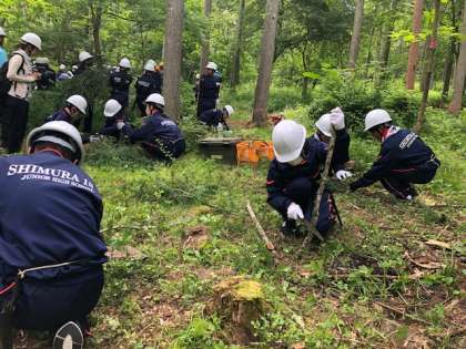 間伐のために伐採した木を再利用するため、通称「やまのこ」で枝を整えていきます。