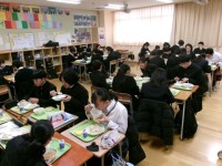 本校では、合唱コンクールの時期に春の気配とともに卒業を感じるリズムとなっています。9年生の放課後練習をのぞいてみると、すでにどのクラスも、全体合唱を中心としたハイペースで練習が行われていました。