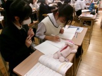 8年生英語では、発音練習に時間が割かれていました。 willを活用した会話文を練...