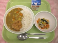 【運動会応援メニュー:チキンカツカレー、和風 サラダ、牛乳 】 明日は運動会 。生徒の皆さんを応援する気持ちを込めて、チキンカツ をのせたカレーライスを作 りました。練習 の成果を発揮して、頑張ってく...