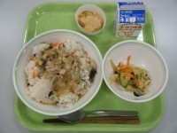 【節分献立:いわしの蒲焼き丼、大豆入りごまあえ、味噌けんちん汁、牛乳】 今日は節分です。節分には、豆をまくことで鬼に見立てた災いや病気などの邪気を追い払い、福を呼び込みます。玄関先にいわしの頭やヒイラ...