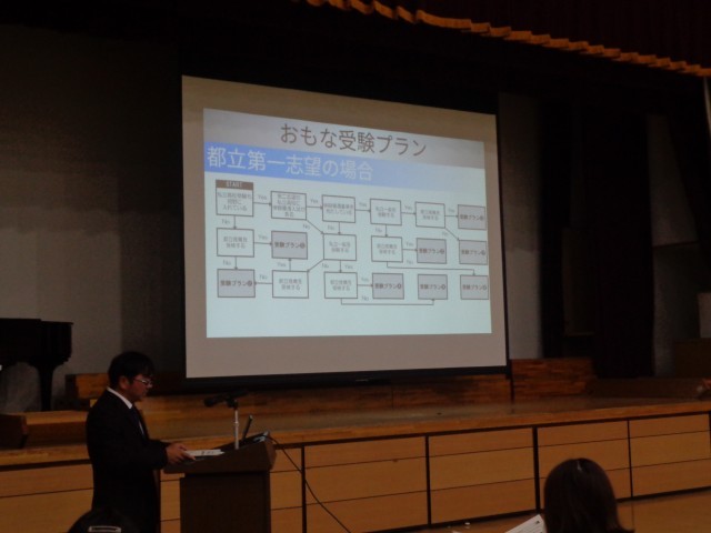 10月15日(水)15時より第2回進路説明会が行われました。主に令和8年度都立入試に向けての変更点や私立高校の入試制度についての説明がありました。7.8学年保護者の参加者も見受けられました。