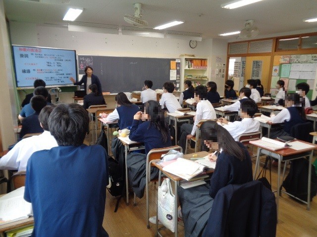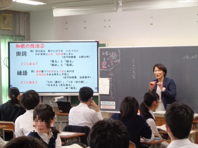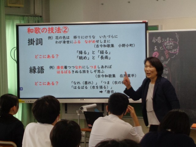 9年2組の2時間目、新たに着任した講師の先生による国語の授業の様子です。和歌の技法について学習しました。
