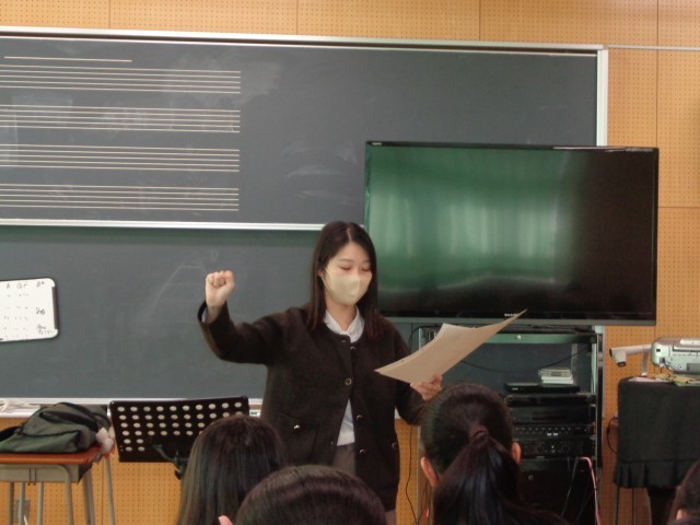 10月24日(金)1校時の7年1組の音楽の授業で、岡﨑教諭から合唱コンクールに向けての最終確認をしました。7年生にとって初めての合唱コンクールということもあり、ドキドキした表情を見せながらも隣の人同士、顔を見合わせながら笑顔で確認をしていました。明日の本番に向けて、どのクラスもクラス全体で一つの曲を完成させることをめざしてきました。明日は大きな感動と仲間の素敵な発見を見せてくれることでしょう。楽しみにしています。