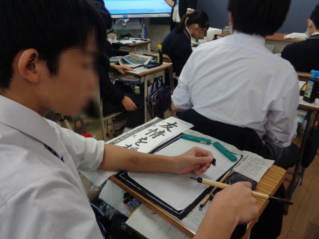 7年1組と8年3組の2時間目は、国語の授業で書写を行いました。どちらのクラスも、年始の校内書き初め展に向けて真剣な姿勢で熱心に取り組んでいました。