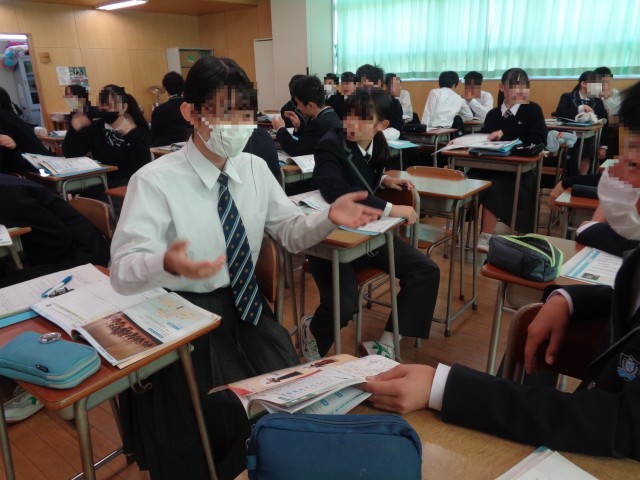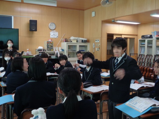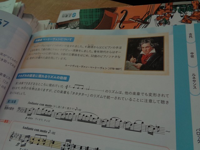 8年1組の4時間目は音楽の授業でベートーヴェンの交響曲第五番ハ短調作品67、いわゆる「運命」について学びました。クラシック音楽の中でも特に有名なこの曲を題材に、各生徒は「自分が指揮者だったら、この曲をどのように表現するか」をテーマに取り組みました。