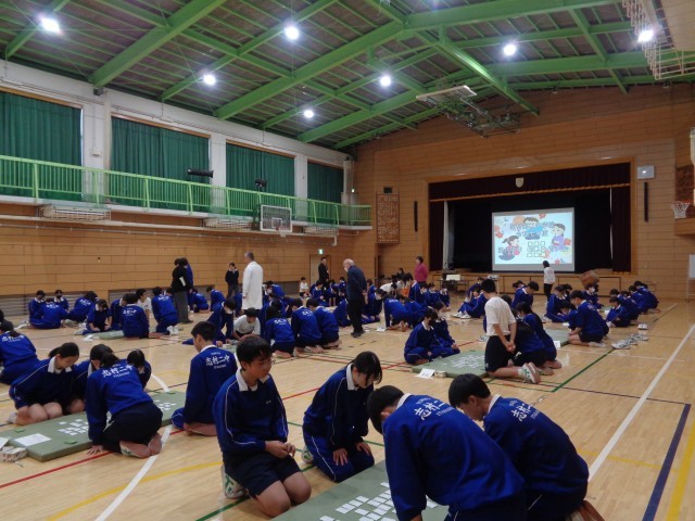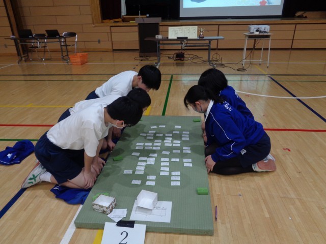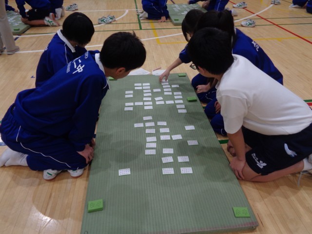 6校時に8学年では新春百人一首大会を実施しました。流れるように響きわたる朗詠に耳を傾け、生徒たちの手は札に向かって飛び交いました。日本の伝統的な遊びに興じる生徒たちの表情は真剣そのものです。1学期に古典の授業で学んだ一首が読み上げられると、喜びもひとしおでした。伝統の音色に包まれた熱い冬の一日となりました。