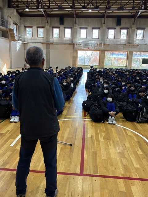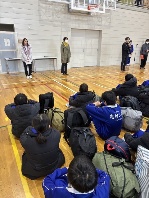 八ヶ岳荘に到着しました。気温は3度。とても暖かいです。入所式を行なっています。