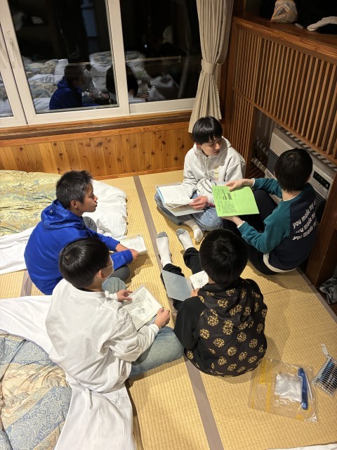 係会での伝達事項を室長を中心に部屋会議をしています。