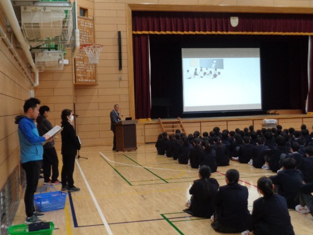 今朝は、本年度最後の朝礼が行われました。校長先生からは、「幸せな人生を送るためには、良好な人間関係を築くことが大切である」とのお話がありました。価値観が合わない人や苦手と感じる人とも関わりながら、自分を見つめ直し、互いに協力することの大切さを学ぶことが成長につながります。そうした経験を通して幸せを感じる力を育み、これからの人生をより豊かに歩んでほしいとの願いが込められていました。