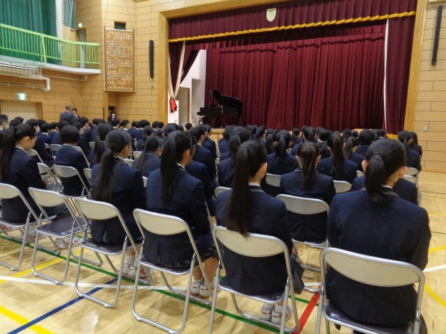 朝の時間に9年生を送る会を行いました。7、8年生から9年生に贈り物を渡し、これまでお世話になった9年生に感謝の言葉をしっかりと述べることができました。その後9年生から、贈り物と文化発表会で歌った「手紙」が披露されました。来週9年生が旅立つかと思うと、「手紙」の歌声がじ~んと心に響き渡ってきました。