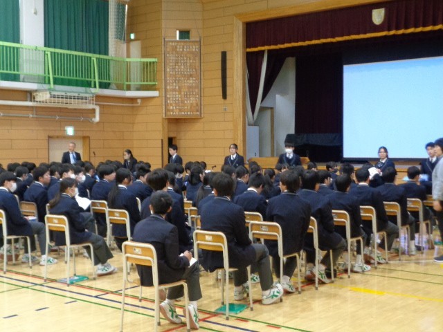 8学年の5時間目は、3校の高校から講師の先生をお招きして進路講演会を実施しました。先生方の講話は、自分に合った進路について考える貴重な機会となり、キャリア教育の一環として、大変有意義な時間になりました。