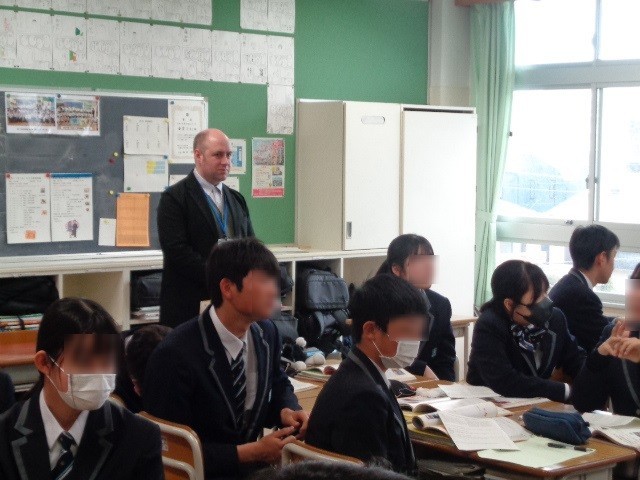 8年1組の2時間目の英語では、班ごとに分かれてテーマについて議論し、自分の意見をグループやクラスメイトに伝える授業を行いました。生徒たちはそれぞれの考えを英語で表現しようと積極的に取り組みました。また、半年間お世話になったALTのハリー先生にとって、今日が最後の授業となりました。ハリー先生、これまで楽しく分かりやすい授業をありがとうございました