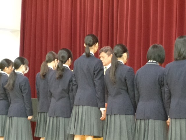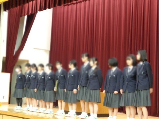 続いて、女子バレーボール部の表彰が行われ、優秀な成果が全校生徒の前で披露されました。