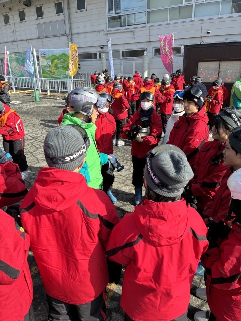 スキー場に到着しました。開校式です。インストラクターの皆さん、よろしくお願いしま...