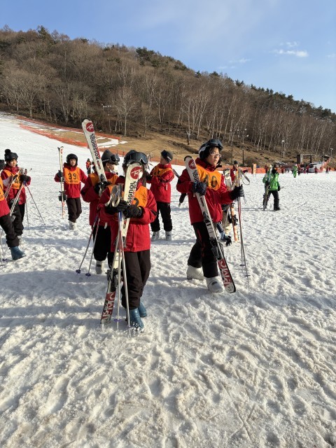 スキー場に到着しました。開校式です。インストラクターの皆さん、よろしくお願いしま...