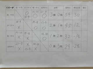 志村三中のチームは、高島一中B・板橋一中C・志村四中Cとの4チームによるリーグ戦に出場し、公式戦3試合を行いました。結果は2勝1敗でリーグ2位。サーブミスも少なく、積極的に相手チームを攻めるプレーで健闘し、準優勝の賞状とトロフィーを手にしました。
