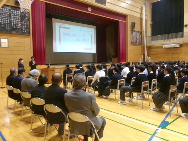 お二方は、違法薬物を使用してしまった少年たちの更生支援に携わっている方々です。その実際の体験を通して、中学生にとっても薬物乱用や依存が決して遠い世界の出来事ではないことを実感させられる内容でした。