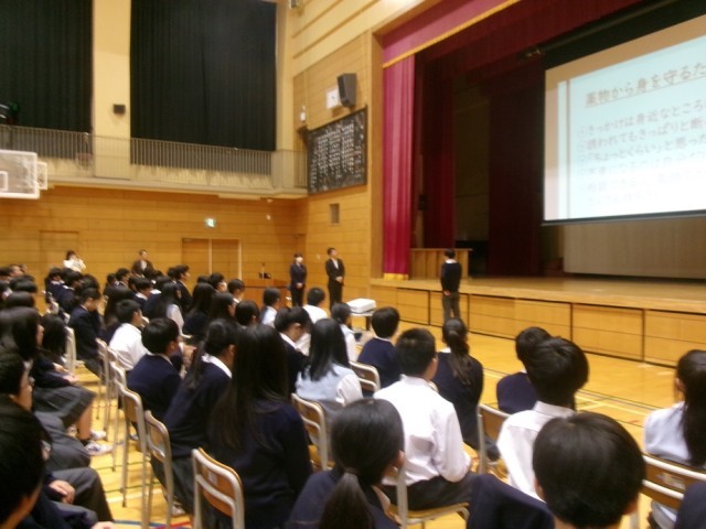 講師として、東京法務少年支援センターの臨床心理士の先生と、東京少年鑑別所の統括専門官の先生のお二方をお招きし、薬物の乱用や依存症を防ぐために日常生活で注意すべきことを中心にお話しいただきました。