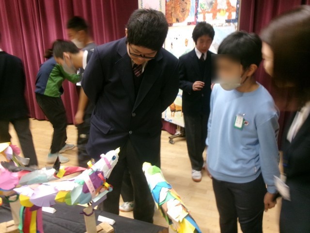 志村六小の合唱は元気いっぱいで、どの子も一生懸命に歌ってくれました。また、蓮根小の作品はどれも力作ぞろいで、見学の際には自分たちの作品を誇らしげに紹介してくれました。
