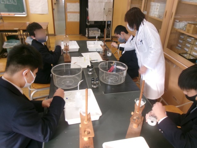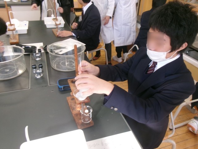 少人数の6組ならではの環境で、一人につき1セットのろ過用具を使うという貴重な体験ができました。生徒全員が上手にろ過を行うことができ、実験前に立てた自分の予想が正しかったことを確かめる姿が見られました。