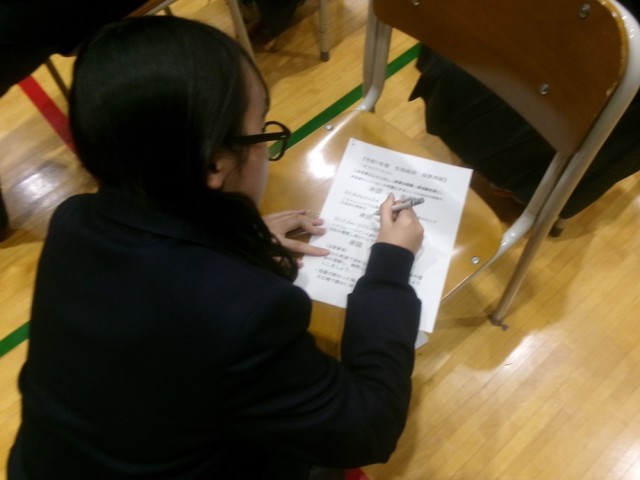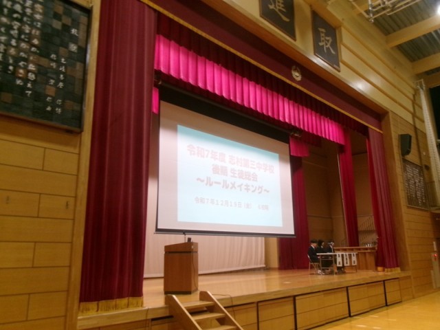 生徒会役員を中心としたルールメイキング委員会は、校則の見直しに向けて、12月19日に臨時生徒総会を行いました。これまでに全校生徒から寄せられた要望をもとに、「体育着のシャツ出し」「ヘアゴムの色の自由化」「くるぶしソックスの使用」について、委員会内だけでなく、iCS委員とも協議を重ねてきました。