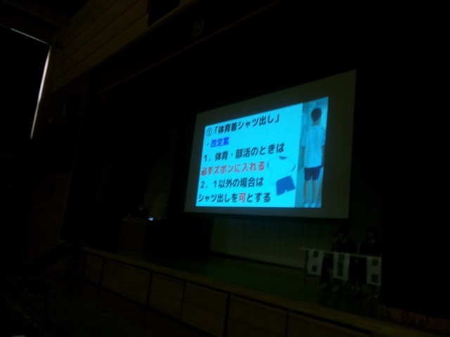 総会では全校生徒による採決が行われ、提案は可決されました。これにより、新たなルールとして「保健体育の授業以外での体育着のシャツ出し可」が採択されました。
