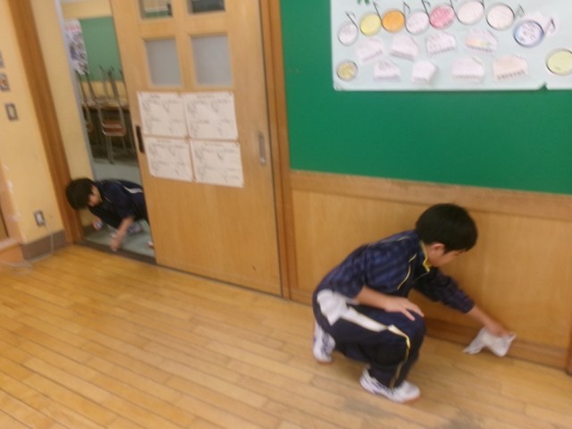 いよいよ2学期もあと2日となりました。本日は、感謝の気持ちを込めて「学期末の美化活動」を実施しました。 普段の掃除ではなかなか手が回らない窓のサッシや棚の高いところ、壁の汚れなどを、時間をかけて丁寧に行いました。床の汚れは、水で薄めた洗剤とメラミンスポンジを使って徹底的に落とし、ピカピカの状態で新しい年を迎えられるよう、みんなで協力して掃除をしました。