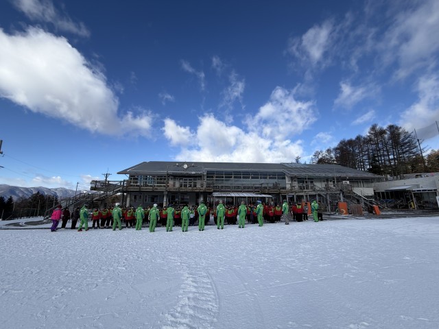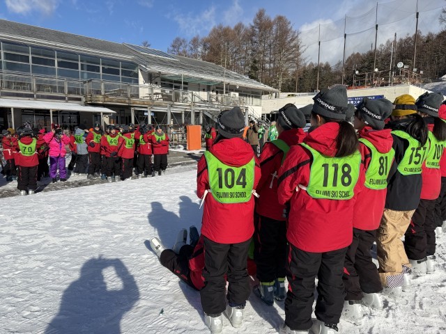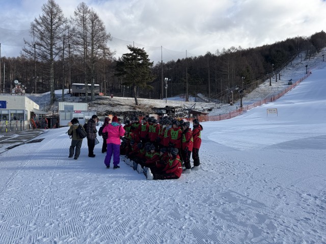 ゲレンデでクラス写真を撮影し、昨日もお世話なったインストラクターさんたちと再会し午前の実習開始です。
