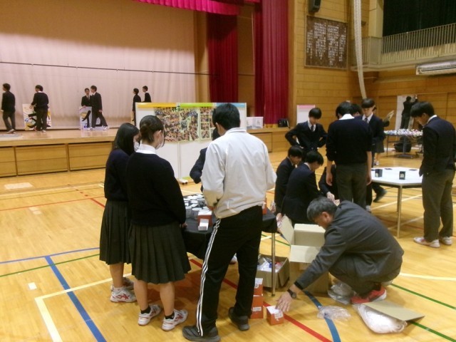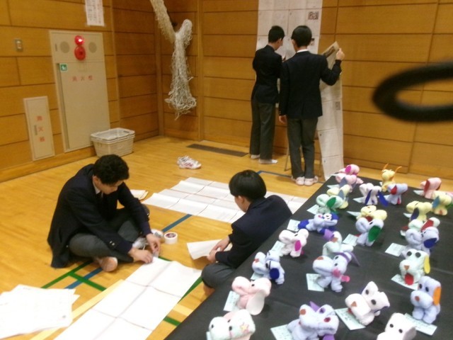 31日に行われる展示発表会の準備の様子です。これまで授業で取り組んできた成果である作品を丁寧に展示します。インフルエンザの影響で8年生が準備に携われなくなり、9年生の一部の生徒が急遽お手伝いをしてくれました。