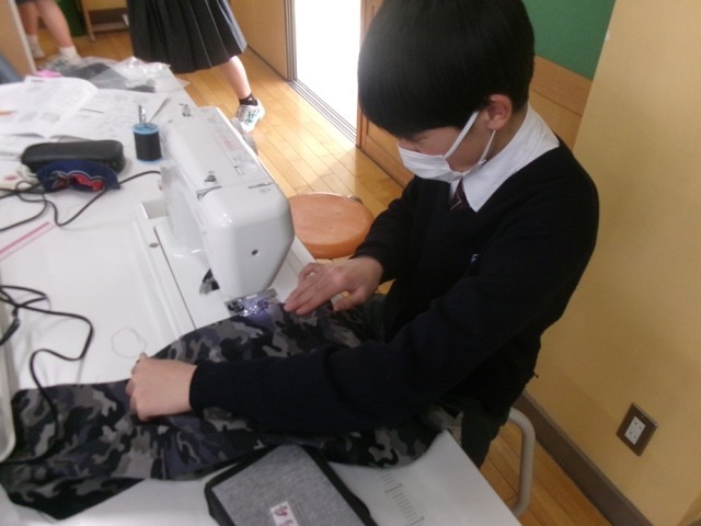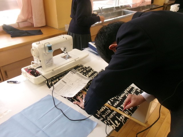 8年生の家庭科では、トートバッグの制作に取り組んでいます。生地を採寸し、ミシンを使って縫製を進めています。本日は、ミシンで縫い代の始末を行いました。大胆に縫い進める生徒もいれば、慎重にゆっくりと作業する生徒もおり、ミシンの扱い方にはそれぞれの個性が表れていました。